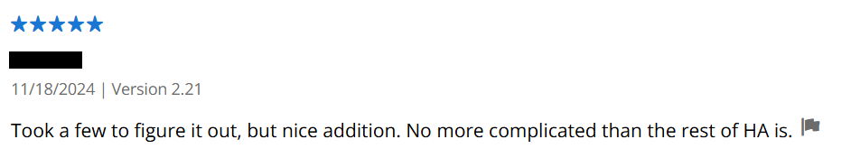 "If you were expecting the setup to be like a Windows programme using points & clicks then you will sadly be disappointed. As the instructions make quite clear, this app is aimed at people who are comfortable configuring Home Assistant. If you are not happy writing a JSON text file, you may need to look for another application."