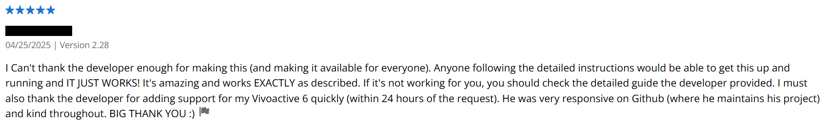 The Connect IQ user [redacted] has sent you the following request regarding your app "GarminHomeAssistant (Application)":