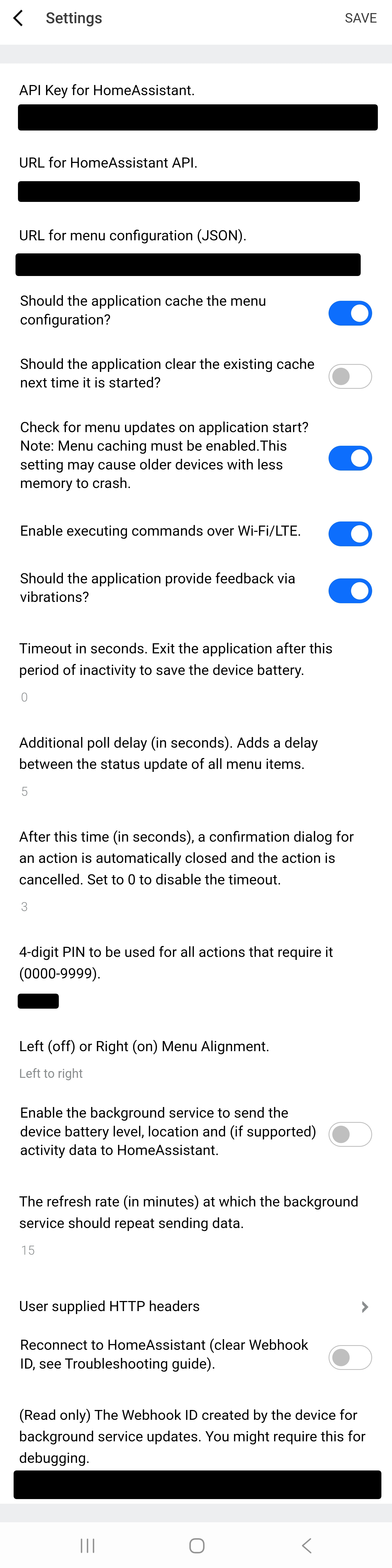 The application timeout prevents the HomeAssistant App running on your watch when you have forgotten to close it. It prevents the refreshing of the menu statuses and therefore excessive wear on your battery level. For those users who prefer to keep the application open all the time for continuous use, they can reduce the battery wear by increasing the "poll delay". This inserts a user configurable number of seconds between each round of item update checks, hence reducing the API access activity. This also reduces the responsive of the statuses displayed when HA devices are switched externally, i.e. by another HomeAssistant client, then the watch menu display will not update as quickly. Therefore if you only use the HomeAssistant App briefly now and then, keep this setting at the default 0 seconds. NB. To be clear, all items are updated then a configurable delay is inserted before the next round of all item updates. If your poll delay is greater than zero, then your application timeout should be set to zero, otherwise you will exit the application and negate the value of the poll delay function.